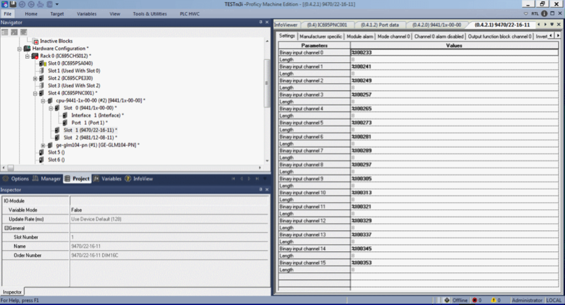 You now have the option to select how you wish to address the module. If you double click on the desired IO card of NIU (in this case) and the memory-based addressing and configurable attributes become available in the working window. Note: In the “Inspector” window you have a field labelled “Variable mode” and this is set to False which sets the device’s channels to memory based addressing.