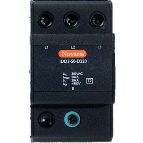 <p>When it comes to safeguarding your electrical systems, a reliable surge diverter is essential. This particular model offers robust protection for industrial and commercial applications, ensuring that your equipment remains safe from unexpected voltage spikes.</p><p>Designed for use in three-phase systems, this surge diverter operates effectively at a rated voltage of 220 VAC. It boasts an impressive rated current of 50 kA (L-PE), providing ample capacity to handle significant surges. The device features LED indicators for power and thermal failure, allowing for easy monitoring of its operational status.</p><p>Installation is straightforward with its shunt connection type and compatibility with TS35 DIN Rail mounting systems. Measuring 54 mm in width, 70 mm in height, and 95 mm in depth, the compact design ensures it fits neatly within existing setups without requiring extensive modifications.</p><p>The product has been built to withstand harsh environments, operating efficiently across temperatures ranging from -40&#176;C to 70&#176;C. Its IP20 degree of protection safeguards against solid objects larger than 12mm but should be installed in areas free from excessive moisture or dust exposure. With humidity tolerance between 5% and 95%, this unit can endure varying atmospheric conditions typical in many industrial settings.</p><p>Constructed from durable aluminium, the surge diverter weighs just 320 g yet offers substantial resilience against physical impacts and environmental wear. The unit&#39;s tightening torque is specified at 2 N-m to ensure secure installation without risk of loosening over time.</p><p>Safety standards are thoroughly met with certifications including IEC 61643-11:2011, AS/NZS 1768:2007, IEEE 62.41.2:2002, and UL1449 (3rd Edition). These approvals guarantee compliance with international safety protocols while assuring users of its reliability under demanding circumstances.</p><p>Additional technical specifications include a fuse rating of 32 A and a lightning impulse current capacity of up to 4 kA (L-PE). The voltage protection level is maintained below &lt;1300 V which provides adequate shielding against transient voltages that could otherwise damage sensitive electronic components.</p><p>Modes of protection cover both L-L (line-to-line) and L-PE (line-to-earth), offering comprehensive defense mechanisms tailored for diverse electrical configurations. Moreover, the rated short circuit current stands at an impressive figure of up to25 kA further enhancing its protective capabilities during fault conditions.</p>