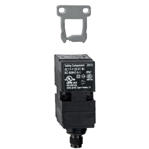 <p>The AZ17 series is a robust solution for industrial and commercial applications requiring reliable safety interlock switches. Designed with precision, this switch operates at a rated voltage of 230 VAC and can handle a current of up to 4 A. Its slow action, positive break NC contact configuration ensures dependable performance in critical environments.</p><p>Built for durability, the AZ17 boasts an impressive mechanical life of 1,000,000 cycles. This longevity makes it an excellent choice for operations that demand consistent reliability over extended periods. The housing material comprises plastic reinforced with glass fibre thermoplastic, providing both strength and resilience while maintaining a lightweight profile at just 86 g.</p><p>Installation is straightforward with its screw mounting type, ensuring secure attachment even in demanding settings. The device&#39;s IP67 degree of protection guarantees complete dust ingress prevention and protection against water immersion up to one meter depth, making it suitable for harsh conditions.</p><p>Operationally versatile, the AZ17 functions effectively within a temperature range from -30 to 80 degrees Celsius. This broad operational temperature spectrum allows it to perform reliably in diverse climatic conditions without compromising on functionality.</p><p>The switch meets several standards and approvals including cULus, EC002592, EN IEC 60947-5-1, EN ISO 13849-1, EN ISO 14119 as well as IFA certification. These certifications underscore its adherence to international safety and quality requirements—essential factors when considering equipment for industrial use.</p><p>With dimensions measuring 30 mm x 30 mm x 85 mm (LxWxH), the sensor size is compact enough for integration into various systems without occupying excessive space. The actuating speed reaches up to 2 m/s offering quick response times necessary for dynamic industrial processes.</p><p>For enhanced electrical performance, the contacts are crafted from silver which provides excellent conductivity and resistance against corrosion—a crucial factor in maintaining optimal operation over time. Additionally, it features a rated insulation voltage of 250 V contributing further to its overall electrical integrity.</p><p>In summary, the AZ17 series presents itself as a reliable option due to its comprehensive feature set designed specifically for demanding environments where safety and efficiency are paramount considerations.</p>